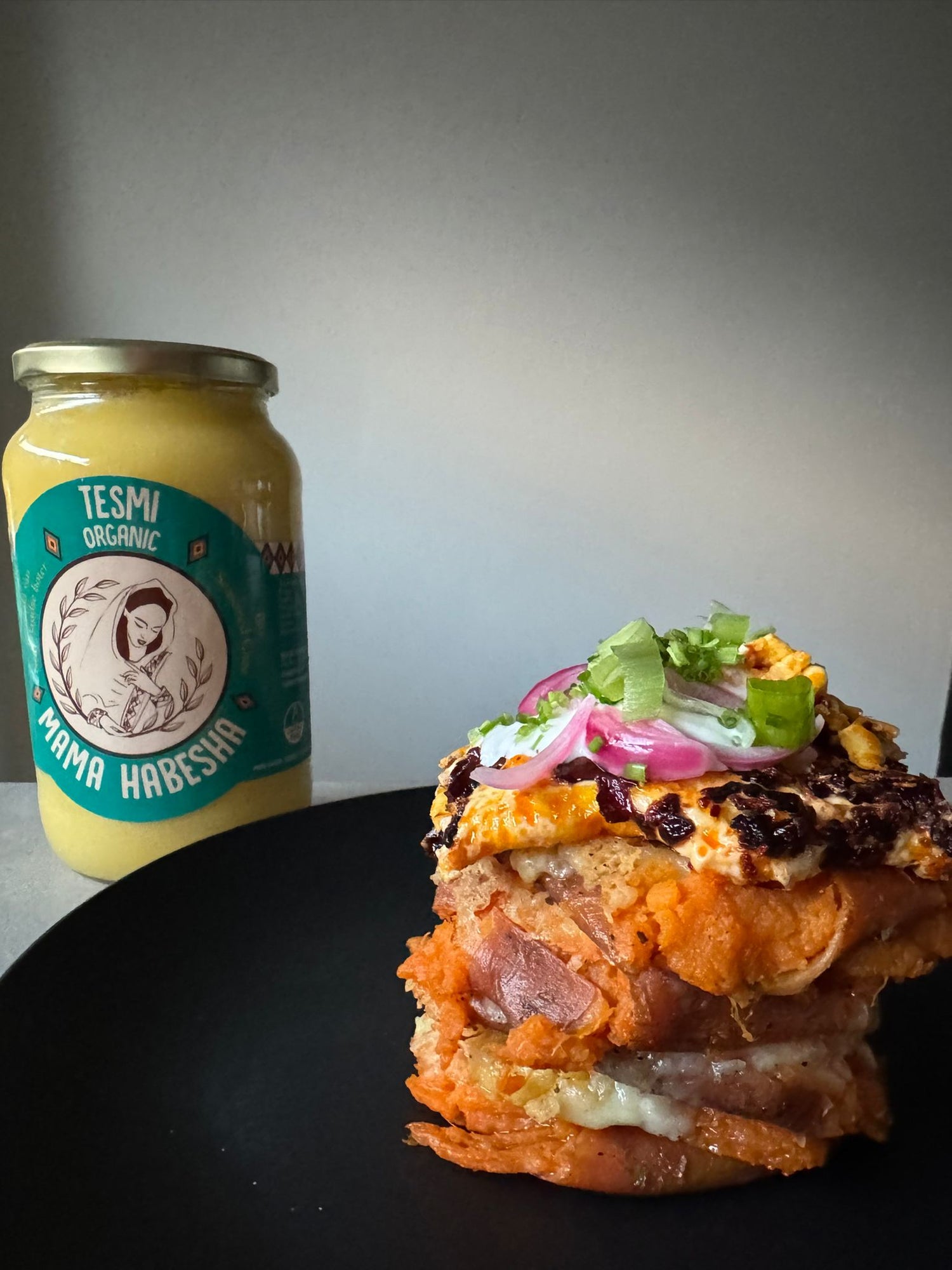 Cheeseburger with caramelized onions in Tesmi